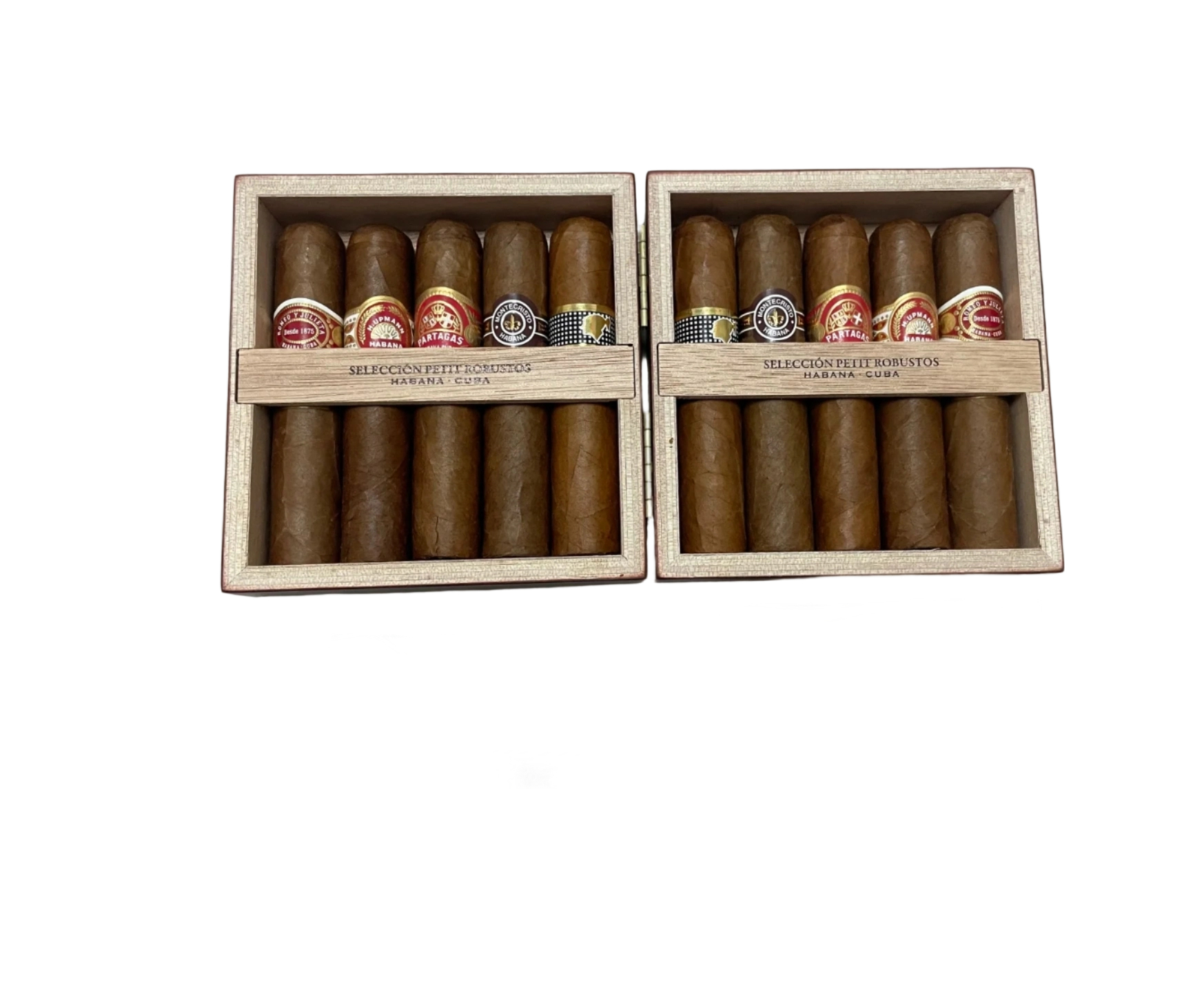 這款精美的雪茄盒內含 10 支精選小羅伯圖雪茄,搭配很用心:高希霸小羅伯圖 ×2、蒙特小羅伯圖 ×2、帕特加斯小羅伯圖 ×2、羅密歐・茱麗葉小羅伯圖 ×2、優名小羅伯圖 ×2。 這個組合是獨家版本,僅此一家不會在其他品牌線出現。 小羅伯圖是現今極為普及的茄型,優點在於能在短時間內為茄客帶來豐富的風味體驗,實用性很強。